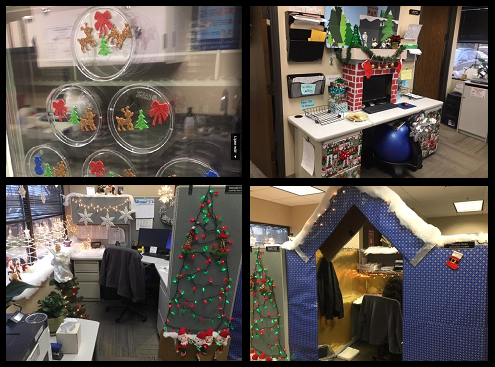 The final vote of the year was of a cheerier sort. For the first time, our lab held a “Decorate Your Area” contest. We went from drab to dazzling overnight. There are magnificent toy soldiers, angels from on high, and loaded stockings hanging on paper fireplaces. The original plan was to have me as the sole judge. I used Executive Privilege to decide everyone would have a say, and our three winners were selected by the entire lab. But really, the whole lab won in this contest!